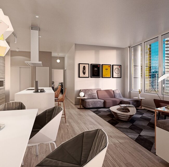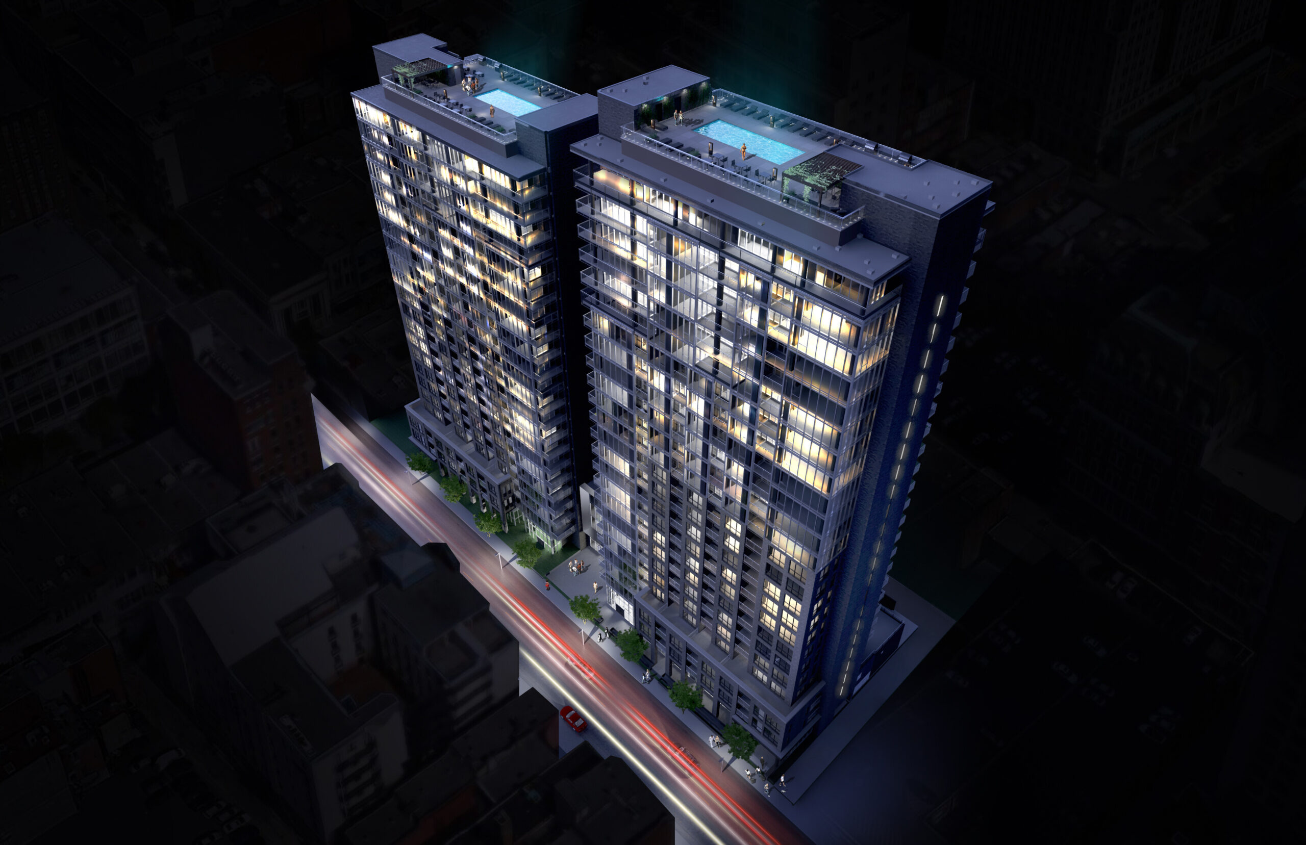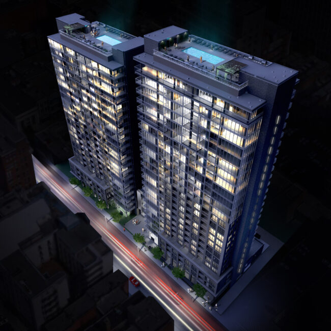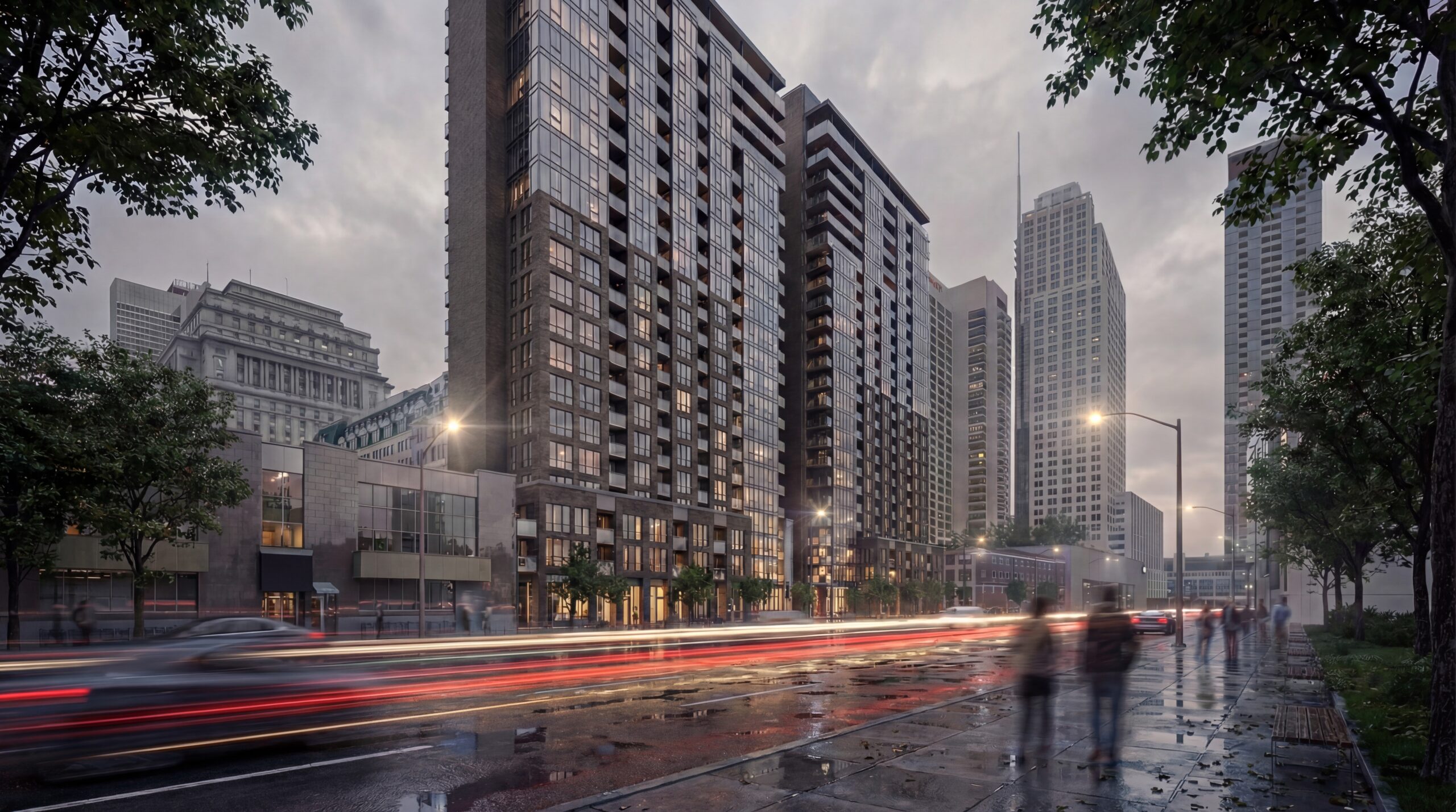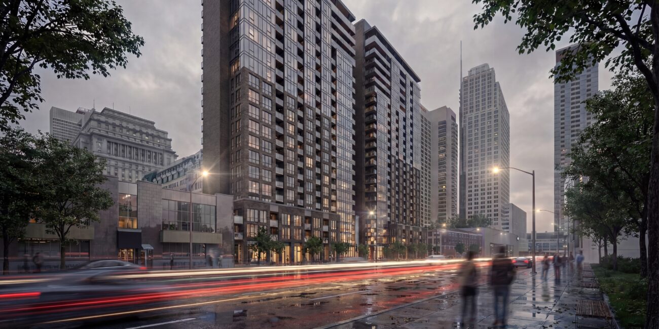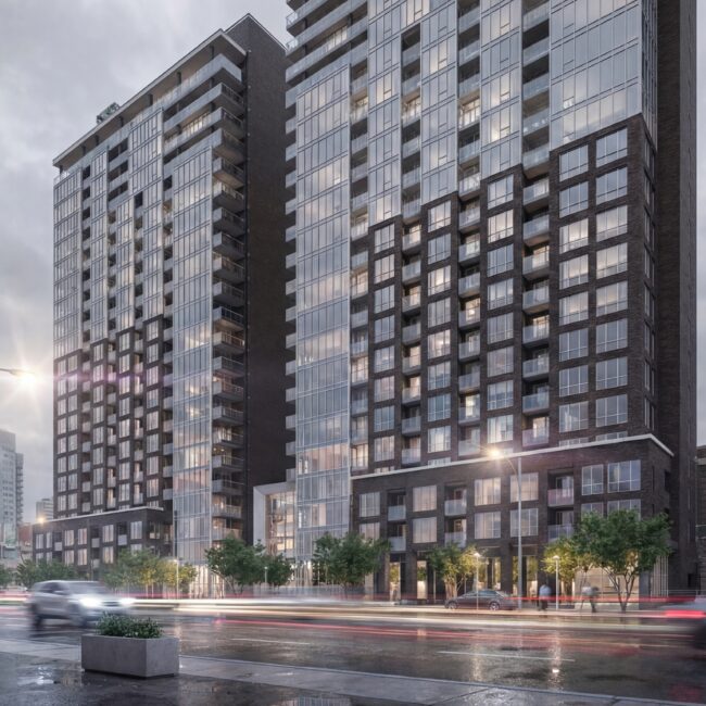 Le Drummond Condominiums is a modern residential development located in the heart of downtown Montréal, combining high-rise living with premium urban amenities. The development’s dual tower approach is anchored by a central “Cube” that unites the two volumes, providing shared amenities, social spaces, and a rooftop oasis. Le Drummond successfully integrates the dynamism of urban life with refined residential comfort.