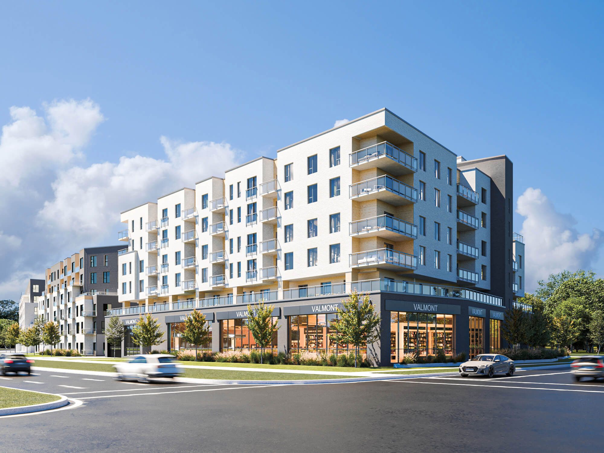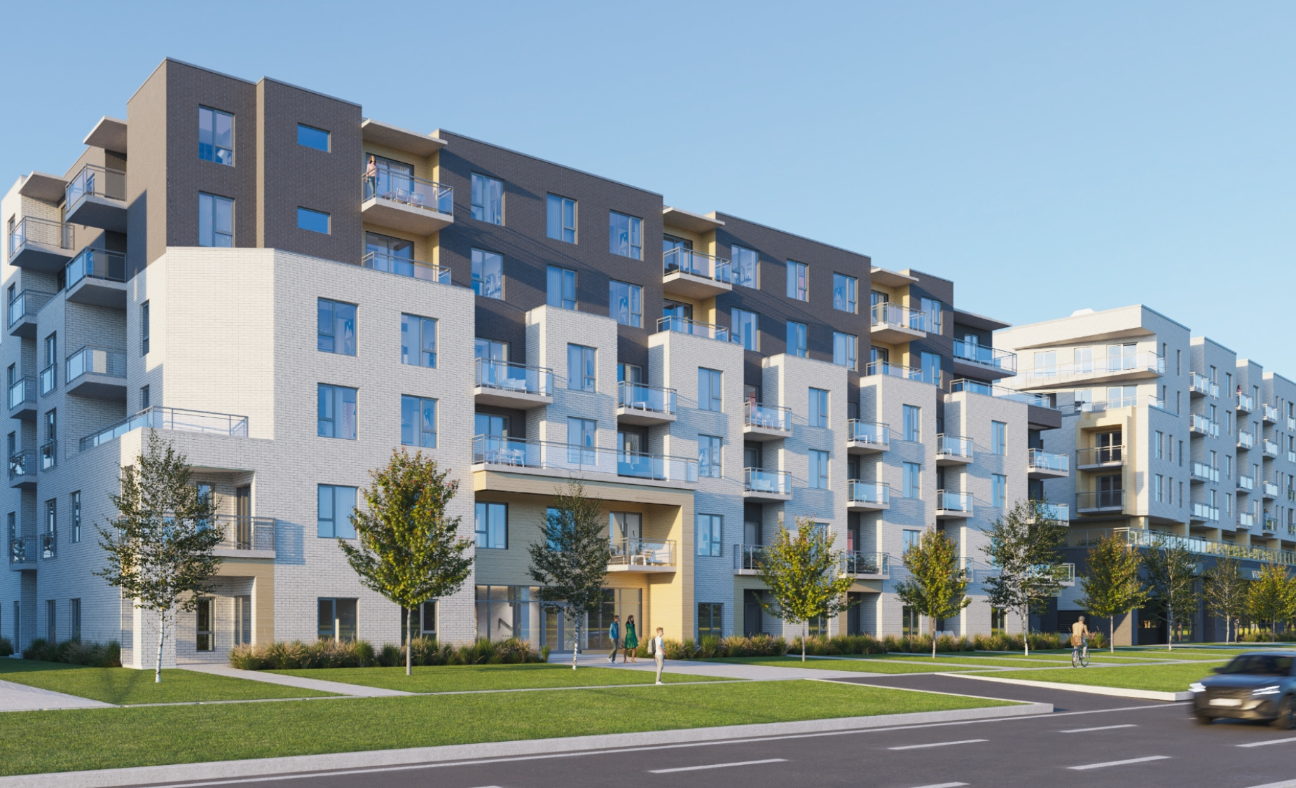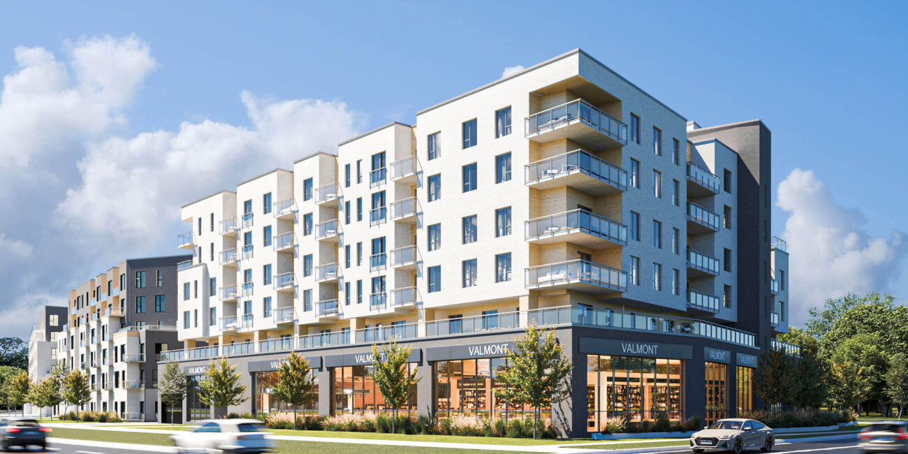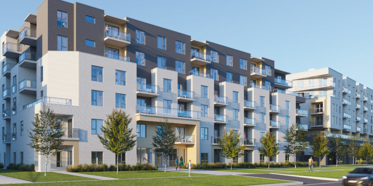 Le MileBrook is a large-scale residential and mixed-use development in Montreal, composed of nine mid-rise buildings. It aims to create a complete community combining modern rental housing, commercial space, and integrated green networks across a formerly underutilized site. With over 800 units planned and public-facing amenities.