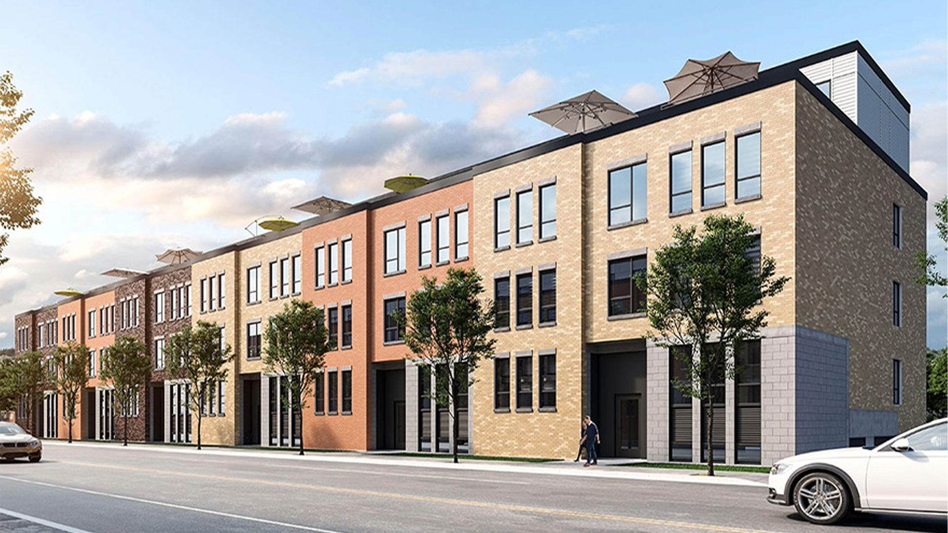 Massing Strategy: Each building ranges from six to eight stories, sculpted through a series of setbacks. These not only reduce visual mass but also generate usable terraces for residents and promote light penetration at the street level.
