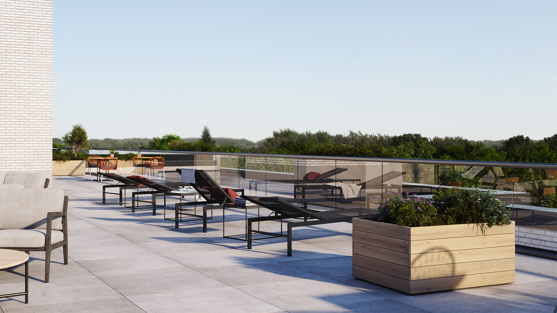 Green Roofs & Terraces: The building is topped with extensive areen roofina svstems, supportina ecological performance and thermal buffering. Private and semi-private terraces punctuate the upper levels, enhancing livability and visual interest.