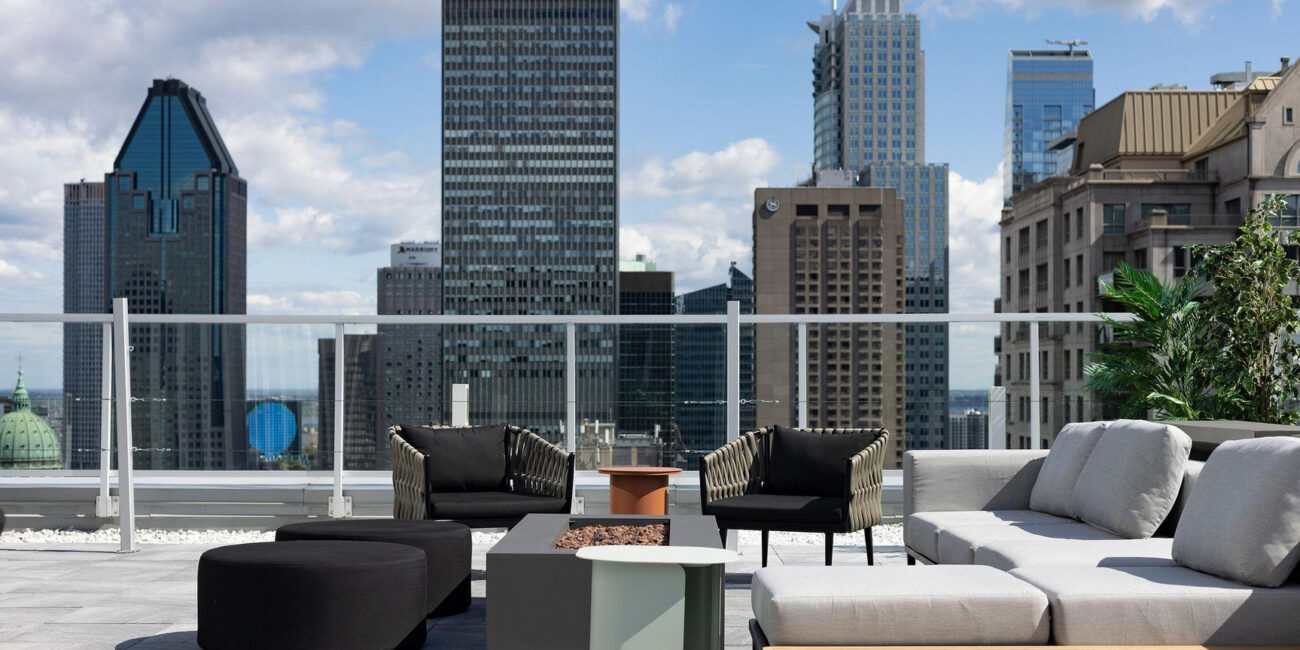 Amenities & Lifestyle Programming: Rooftop terrace with panoramic city views.