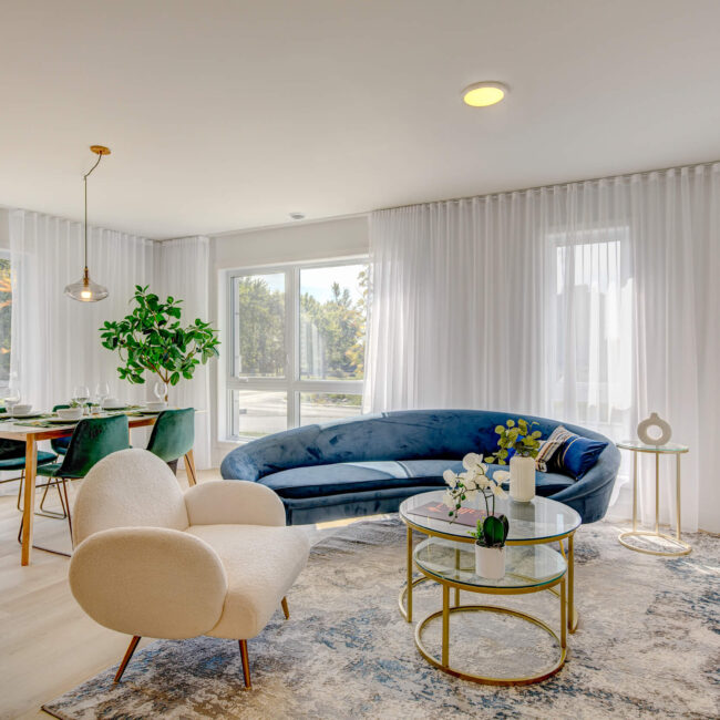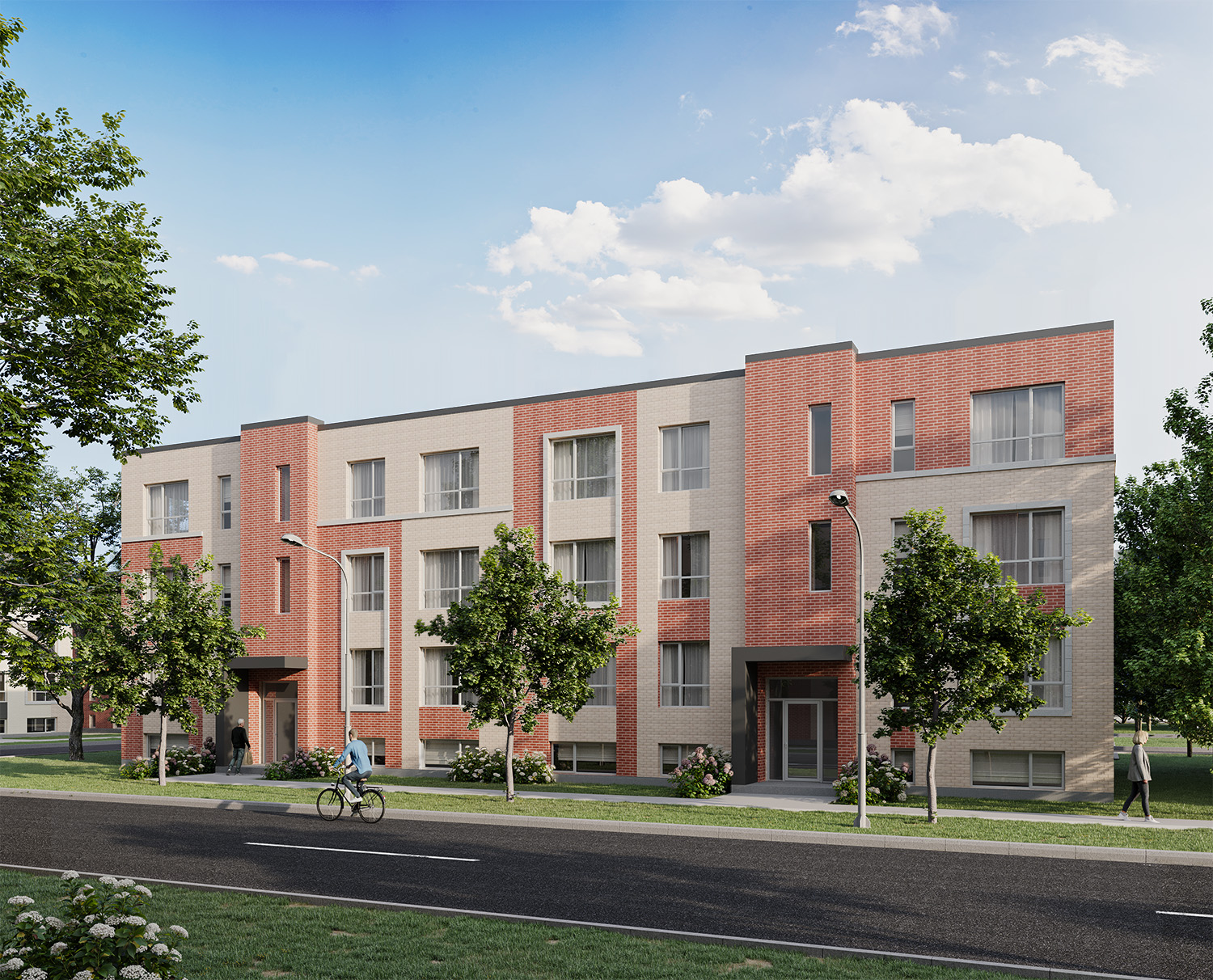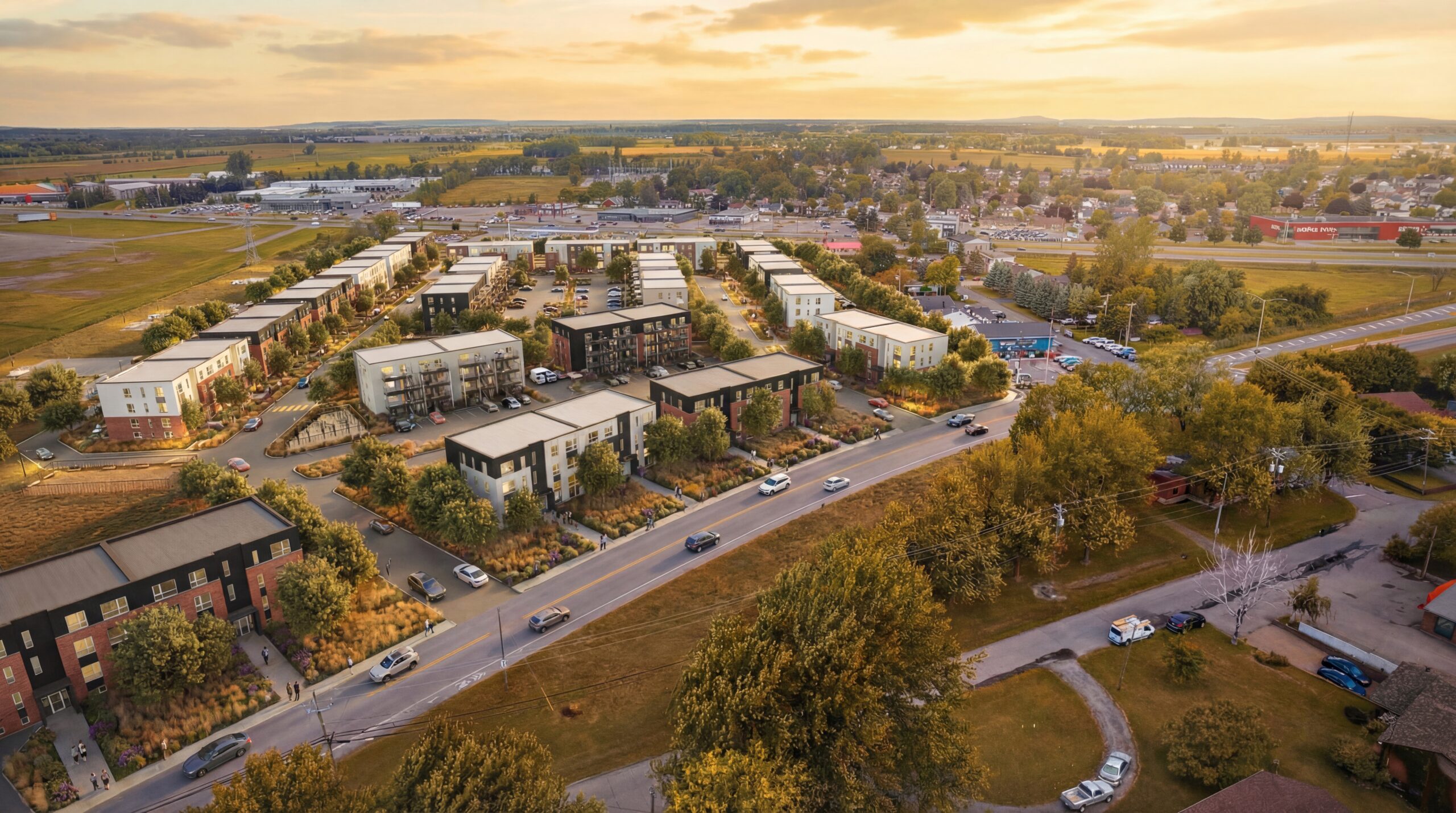 Valléa is a thoughtfully designed residential community located in Salaberry-de-Valleyfield, Quebec. Comprising 43 four-story buildings, each housing eight rental units, the development offers modern two- and three-bedroom condominiums. The project emphasizes a harmonious blend of urban living and natural surroundings, providing residents with a tranquil yet connected lifestyle.