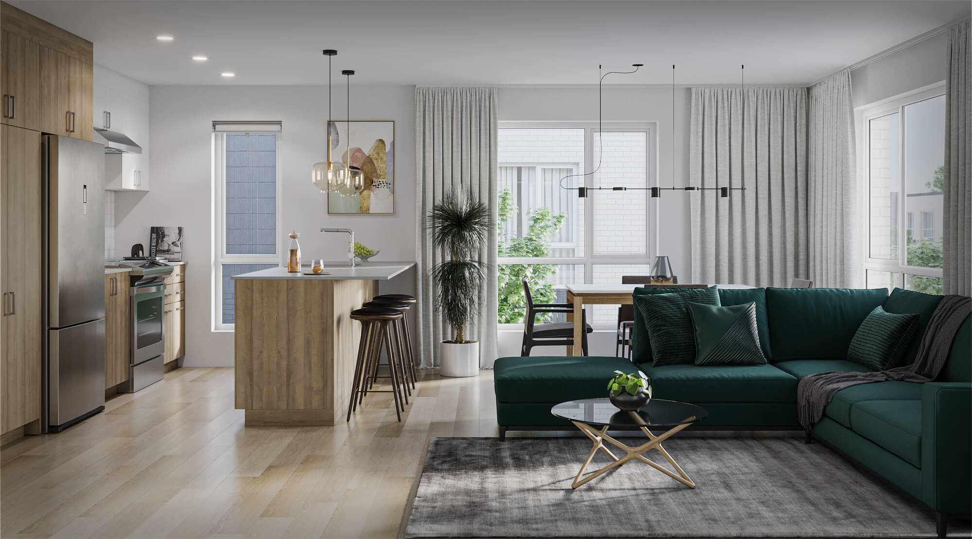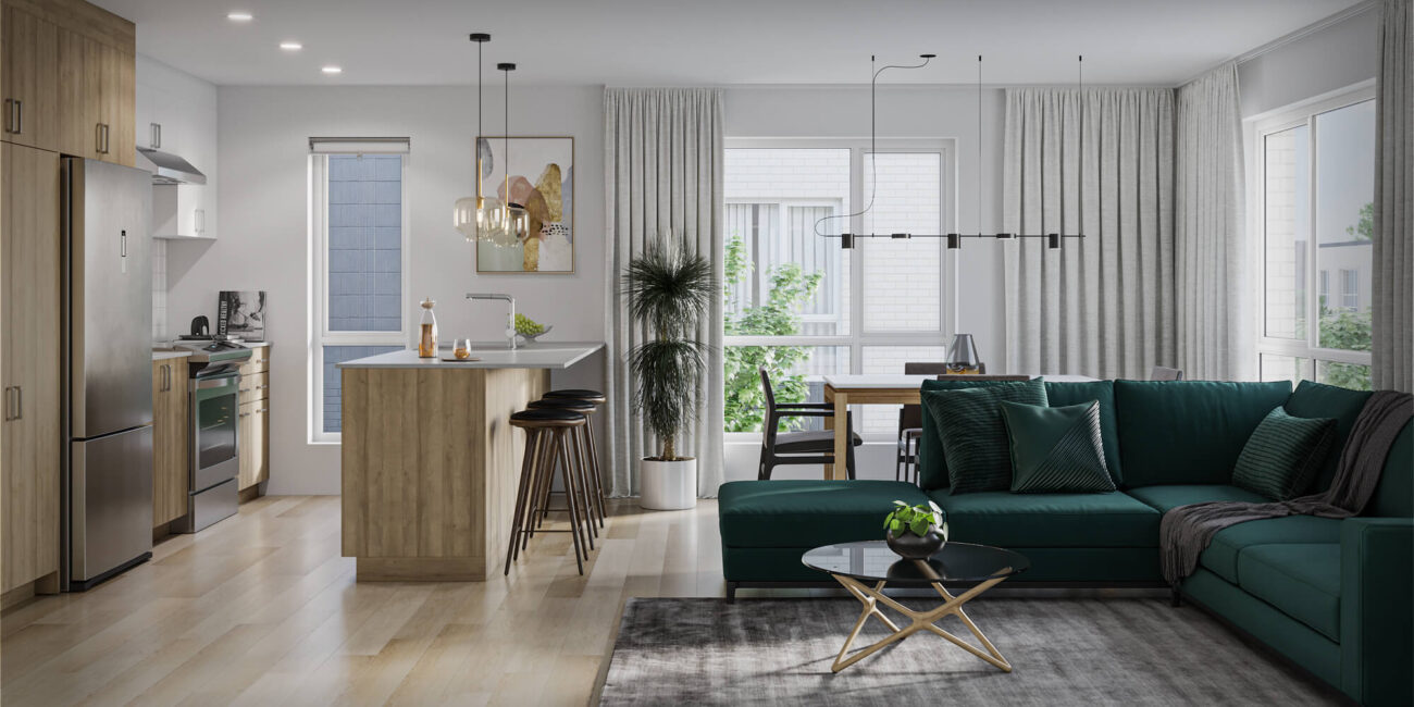 The design of Valléa focuses on creating a village-like atmosphere that fosters community engagement and well-being. The use of wood frame construction contributes to a warm and inviting aesthetic while promoting sustainable building practices. Each unit features generous fenestration, allowing ample natural light and a connection to the outdoors.